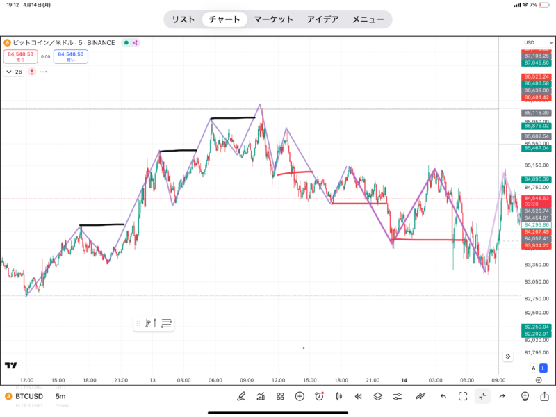 - 画像ではもう少し小さな時間軸(LTF)で見ています。