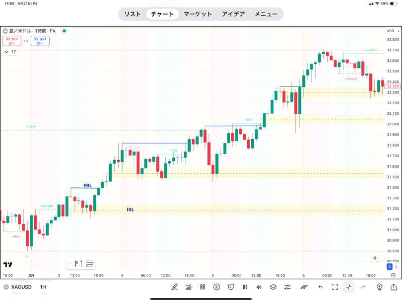日足や週足でERLとIRLを分析し、市場のバイアスを確認するようにしてください。
