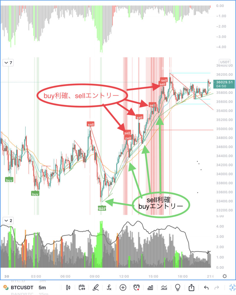 たけ子さんを使って利益を上手く出せない人は、右のsellでエントリーして損切り(損切りしない人も。)、もしくはスイングなどで見てるチャートと時間軸が合ってないなどかな。