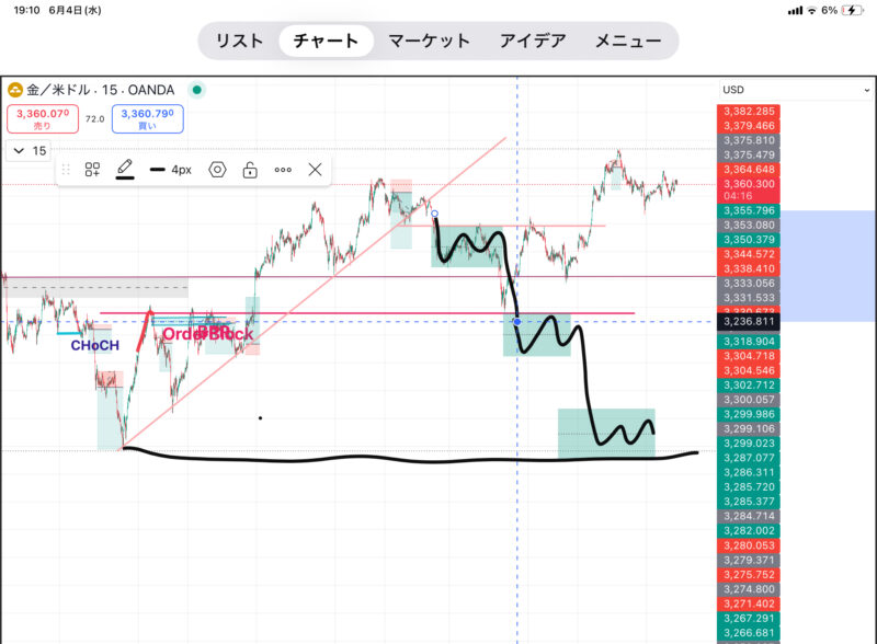 画像を見るとCHoCHもしているし、MMSMではないかと思い私は売りのセットアップをします。
