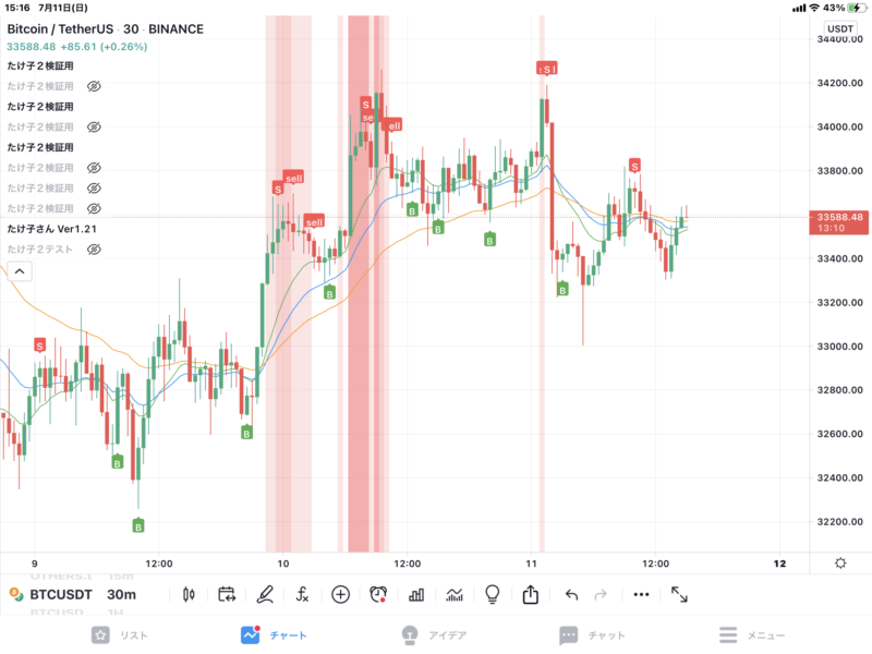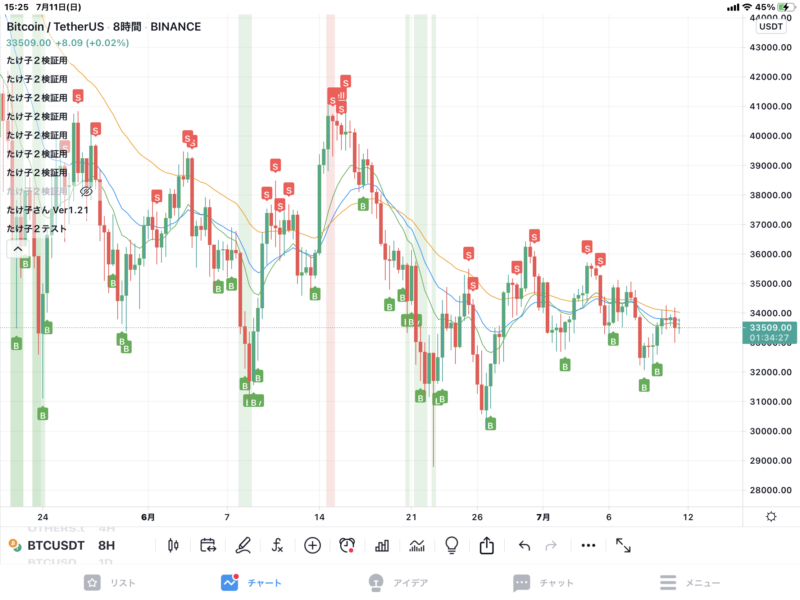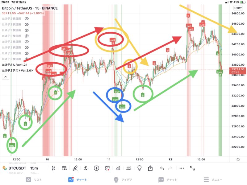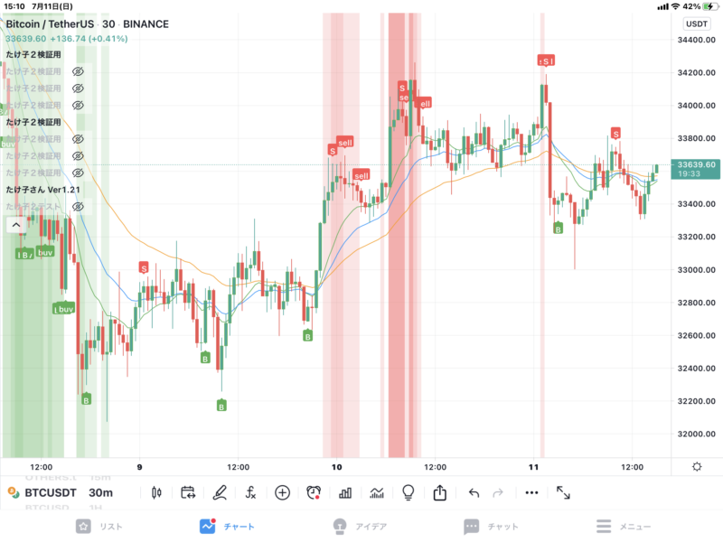 通貨ペア(為替、仮想通貨、株)や時間軸はどのペア、時間足でも同じようにサインは出ますが再現性のあるエントリー、イグジットを心がけてください(雰囲気でエントリーして、たまたま上手くいっても意味が無いので)。